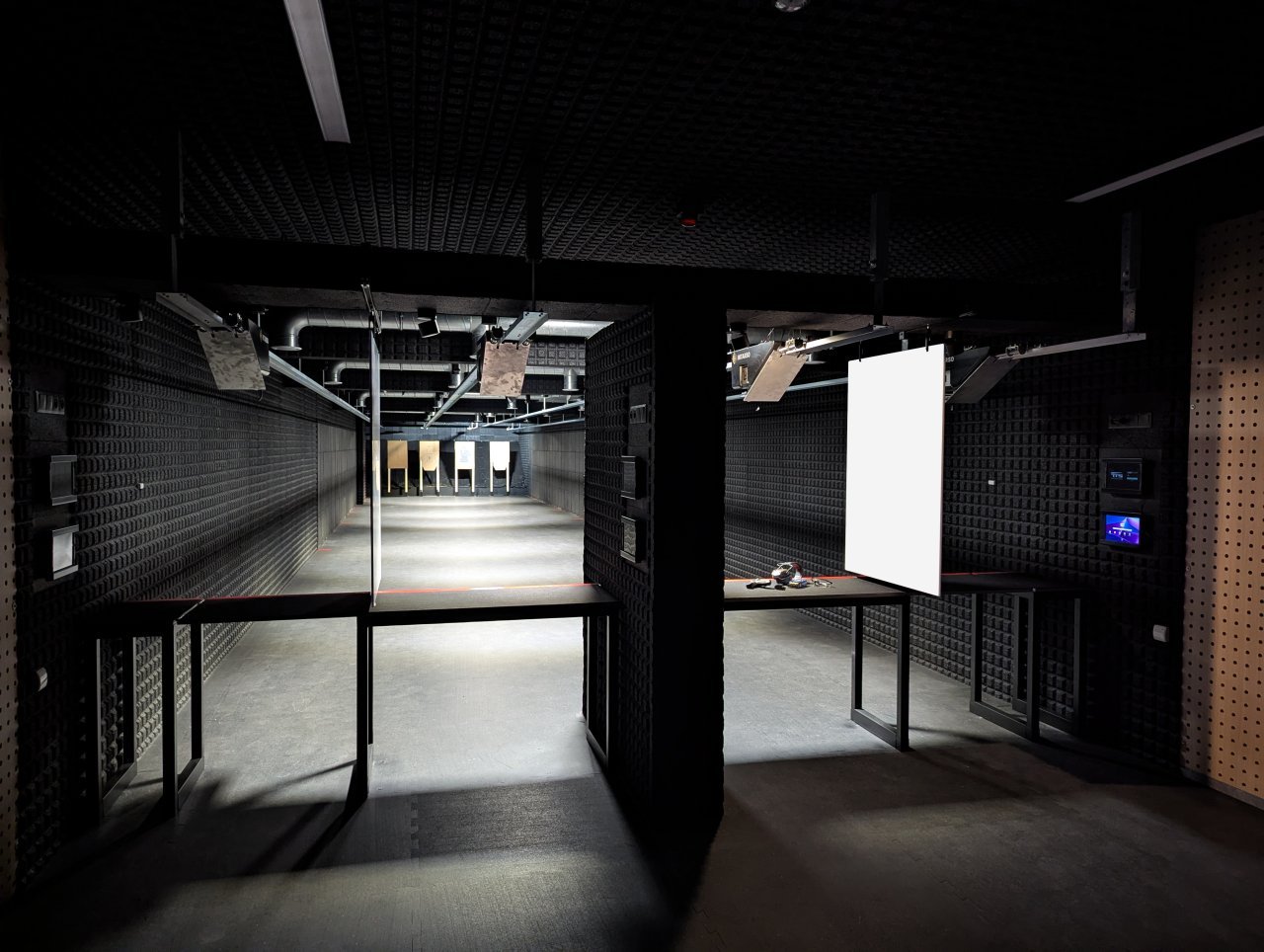 Standardní 25 metrové střeliště pro pistoli, revolver, PCC disponuje 4 stavy pro střelbu.