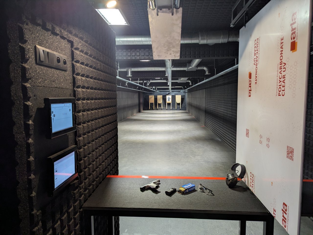 Vnitřní kulová střelnice o délce 25 metrů s možností kamerového zobrazení terče a s kvalitní vzduchotechnikou.
